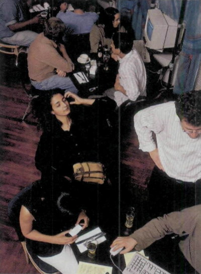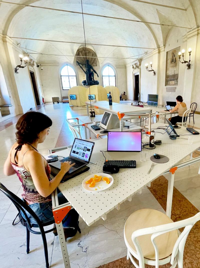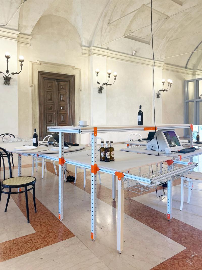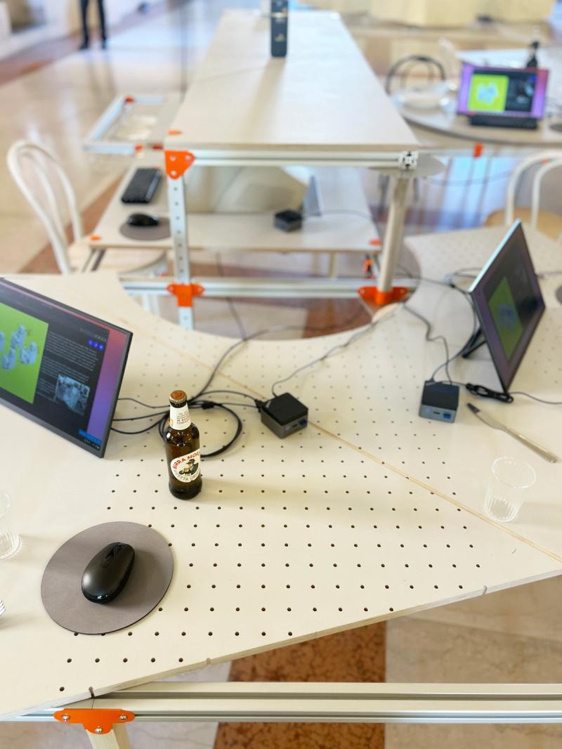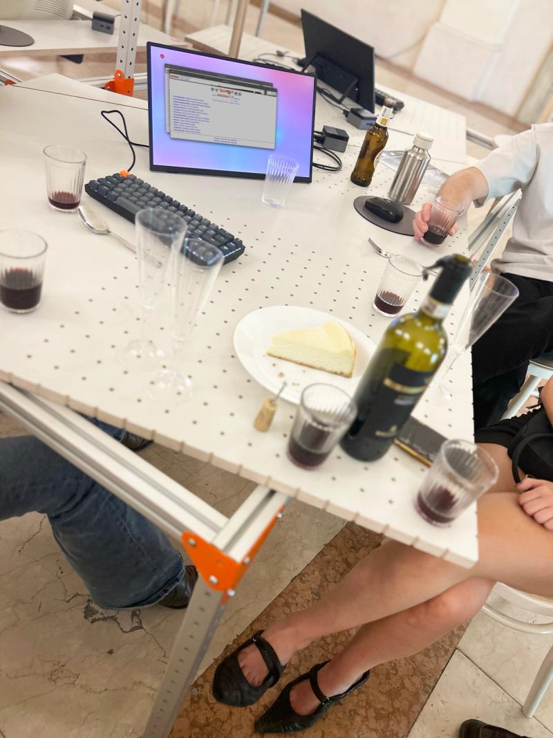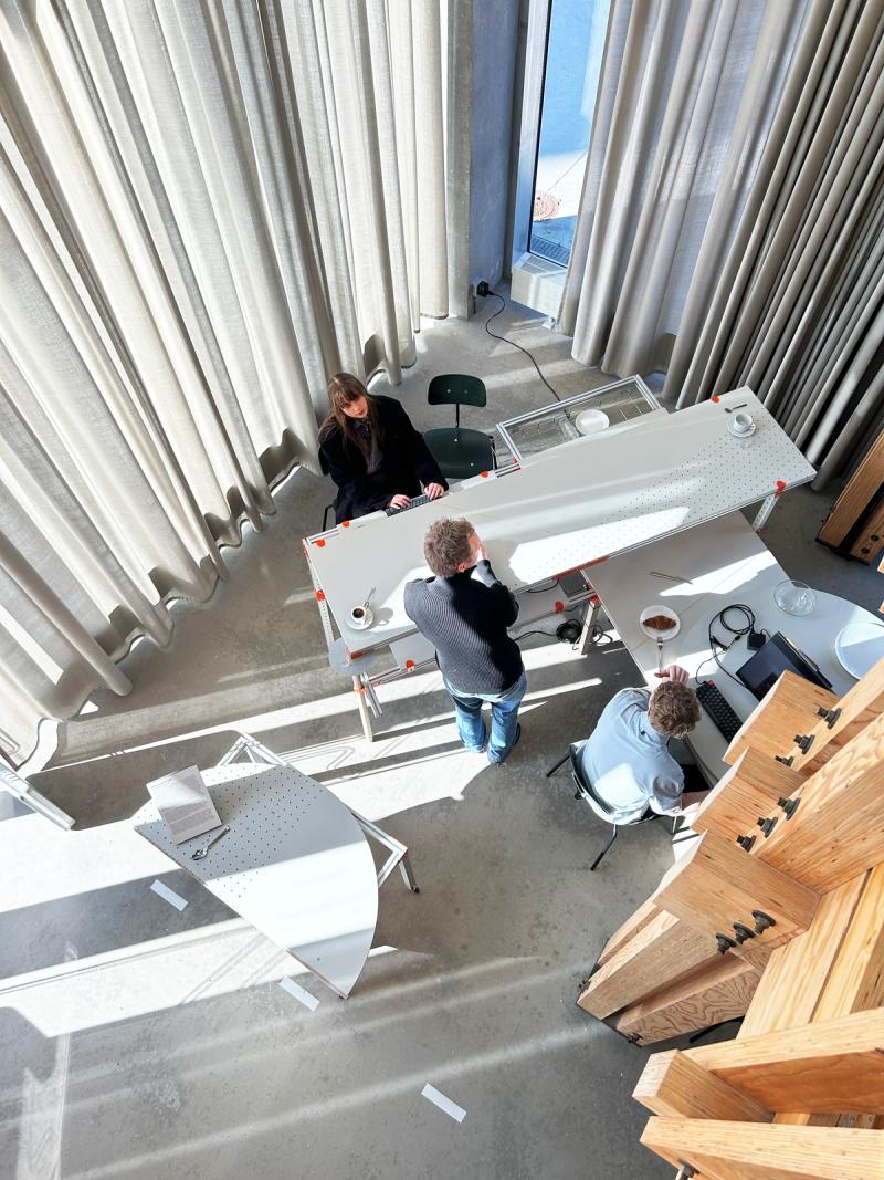 This project investigates the spatiality of the digital through a media-archeological recovery of the early internet cafe. In an age of Big-Tech and ubiquitous digital connectivity, the internet cafe is a relic of a time when the internet revealed itself as place. Today, most are free to browse the web in the comfort of their homes: curtains drawn and nestled behind the veil of iPhone’s privacy mode. We surrender to feedback loops of online advertising tailored towards our individuated data profiles, and we seek out digital communities of consensus to reinforce our political and social ideologies. But if we look back at cyber history we might see the early internet cafe as a complexly negotiated social space that could counter our divisively siloed and corporate-regulated media habits. We might then also understand the internet itself as a social space—one coexistent with the space of internet access. In this light, the internet cafe recalls its Habermasian namesake as a venue for the emergence of public life through encounters with difference, virtual and IRL. Our work began with in-depth research on early internet cafes. Concentrated between the years 1994 and 1995, before spatial habits around internet consumption were normalized, these early cafes exhibit subtle but compelling attributes that could be valuable hacks for spatially re-socializing today’s internet. We find productively awkward attempts to contend with the materiality of digital infrastructure and potentially subversive bodily and visual relationships between cafe occupants. We also find uncanny moments when computers appear anthropomorphized and quietly radical attempts to hybridize and overlay the cultural activities of dining and computing. Further research on today’s remaining internet cafes holds a lens to structural relationships of class, gender, and race. These cafes often provide connectivity to systematically marginalized populations who otherwise lack connection. Drawing on our analyses, our installation is an internet cafe for Palazzo d’Accursio in Bologna. Also constituting a framework for engaging the work of the other exhibition participants, our cafe insists on the materiality of the digital sphere, re-spatializing internet consumption in order to critique pathologically naturalized and desocialized digital habits. The cafe is assembled from a melange of building component systems, hacked to playfully unite. We invite visitors to sign-in, browse, and celebrate connection—digital, social, and tectonic. Winner of the Big Tech and Counter-Technologies Open Call and featured in “Data Materialities” curated by Carmen Lael Hines and Into the Black Box. Exhibited in Sala d’Ercole at the Palazzo d’Accursio in Bologna, Italy alongside works by Morgane Billuart and Raúl Silva. Selected for exhibition in the 2026 Works & Words Biennale. Exhibited in the library at the Aarhus School of Architecture in Aarhus, Denmark. Team: McLain Clutter, Cyrus Peñarroyo, Axel Olson, Krzysztof Lower Year: 2025